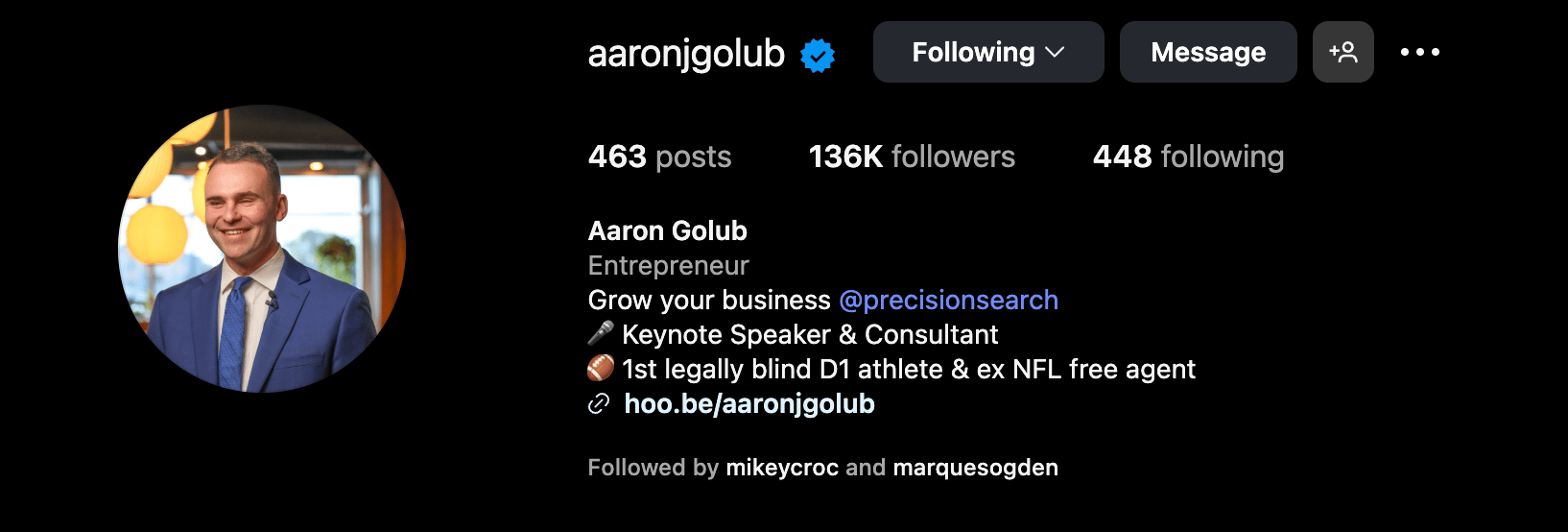 Aaron Golub raised his. Born legally blind, he trained himself to compete at the highest levels of American football—eventually becoming the first legally blind Division I athlete to take the field. But his story doesn’t stop at sports. Today he’s a sought-after keynote speaker and the founder of PrecisionSearch.io, an SEO tool reshaping how businesses rank in the AI era. Aaron’s life proves that resilience is forged not when everything goes right, but when you build strength in the face of everything wrong.